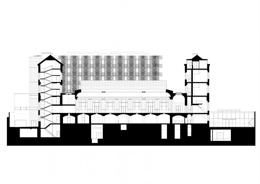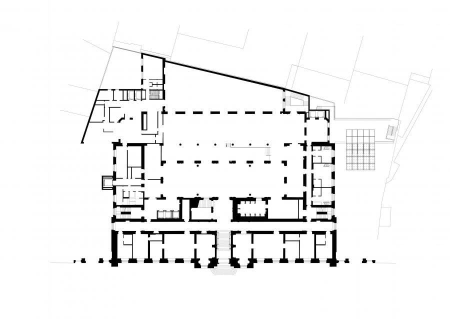 V přízemí je dále umístěno sportovně-relaxační centrum. Bazénová hala inspirovaná duchem antických lázní je vložena do historických prostor původně nahrazujících sklepy domu s pilíři a klenbami.