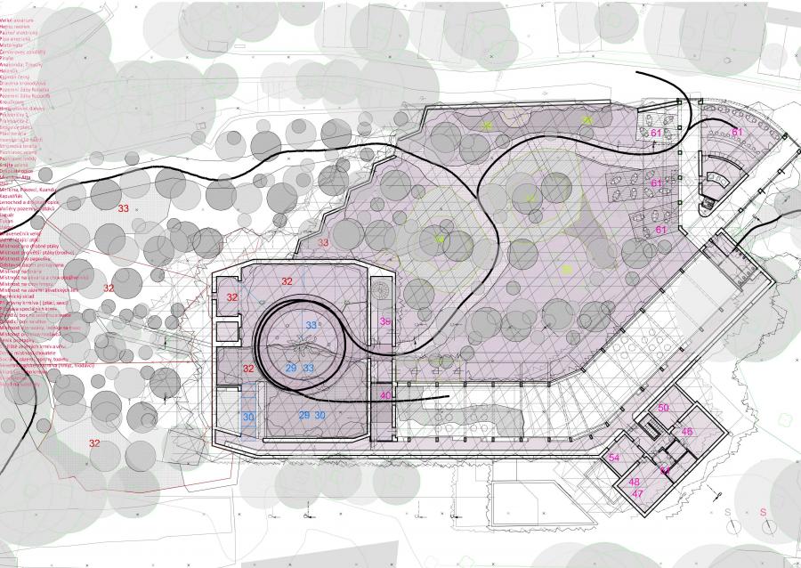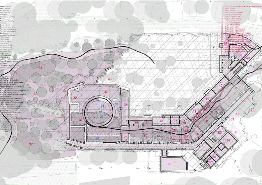 Návrh je vyprávěním příběhu, který maximálně respektuje pořadí stanovené libretem. Drobné výjimky v rozmístění expozic jsou jen v části A, především z důvodu zachování a vhodného využití stávajících dřevin.
