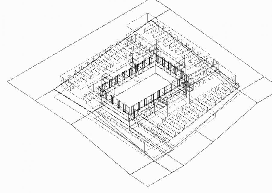 Odtržení horních objemů od soklu přináší možnost prosvětlit relativně značnou hloubku dispozice dílen stejně jako její přirozené odvětrání. To mimo jiné umožňuje zahloubit prakticky celý objem soklu do terénu. Takovéto zacházení s volumetrií pak přináší ještě další nezanedbatelnou výhodu – využitelnou plochu střechy dílen. Sekundární prostory zde lze využít k parkingu vozidel, ale zároveň může plnit roli doplňkového exteriérového prostoru atelierů. Krom atelierových boxů je přes horní hranu světlíků přeložen ještě jakýsi svorník – zasklený ochoz či ambit horizontálně propojující všechny ateliery.