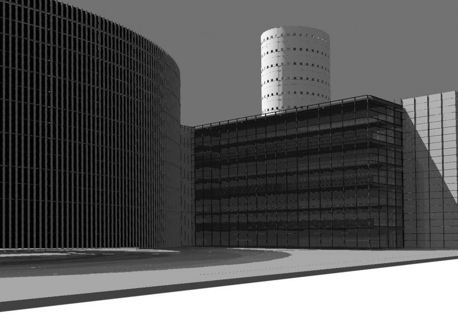 Kontext řešení je jednoduchý. Kubická stavba čtenářského sálu potvrzuje základní strukturu okolí. „Stěna knih“ je položena ve stejném odstupu od ulice, jako je hloubka hřebínkové kompozice VŠCHT a uzavírá prostor. Čtenářský sál s transparentními stěnami tvoří jakousi krytou agoru, kterou vysokoškolský kampus určitě přivítá. Knihovna tak může částečně přebírat roli významového prostorového těžiště. Válcová struktura čítáren tvoří v urbanistické kompozici „kloub“. Je v tomto místě logický – struktura okolních hmot se otáčí o 45°. Jednoduchá kompozice tří prvků – válce, hranolu a dlouhé štíhlé dominanty dynamizuje vztahy k okolním stavbám. Přináší novou energii.
