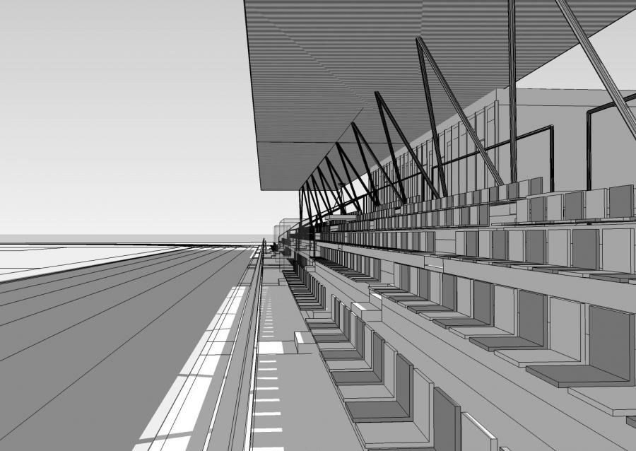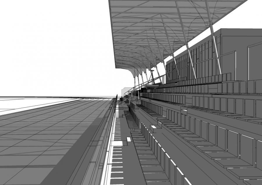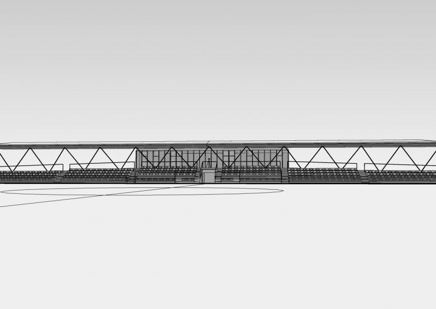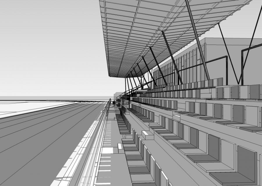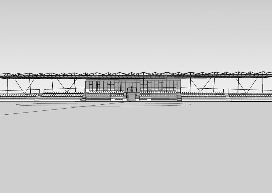 Ekonomicky výhodné zastřešení tribun (předpoklad cca 40% kapacity tribun) a nosné konstrukce tribun,