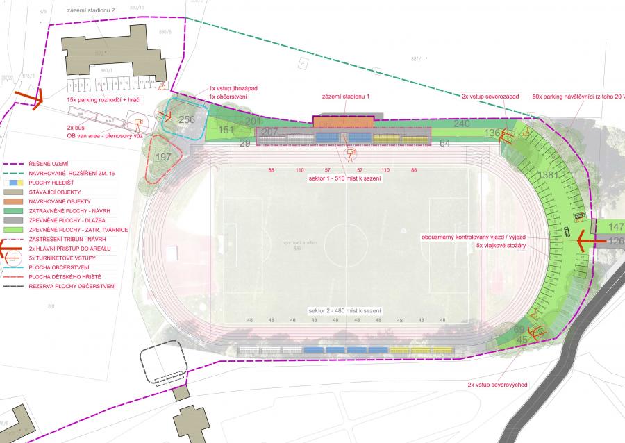 Zajištění možnosti rozšíření zázemí stadionu v souvislosti se změnou ÚP č. 16,