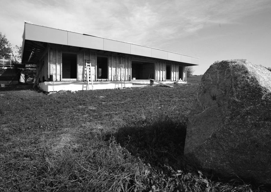Základy tvoří podélné základová deska nebo. Kompletace otvorů budou specifikovány v další fázi. Opláštění objektu je provedeno ze svislých modřínových latí mezi které je vypletena předstěna z vrbového proutí chránící vnější tepelně-izolační vrstvu.